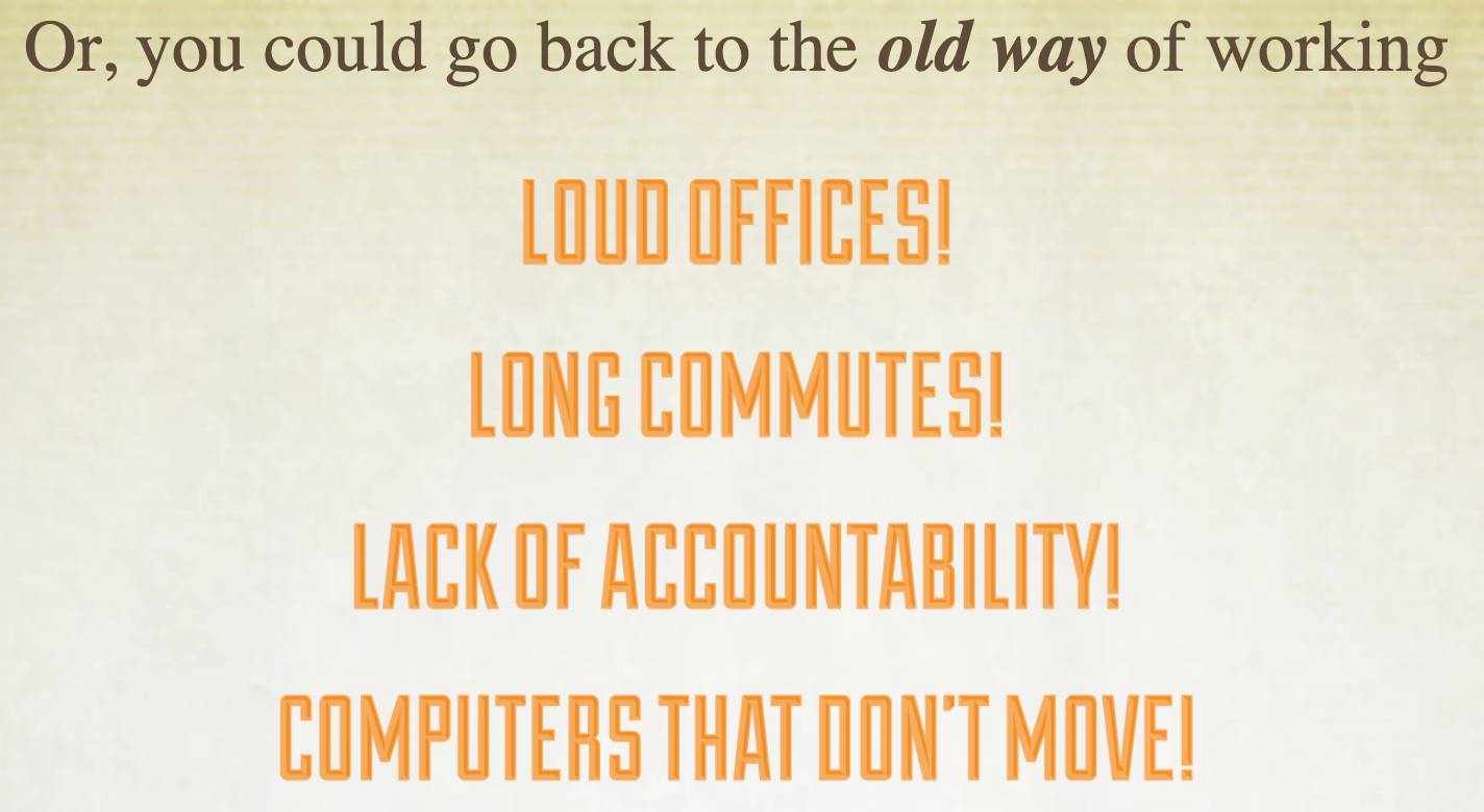 A creative, comical, retro way to sell telework to the corporate crowd.